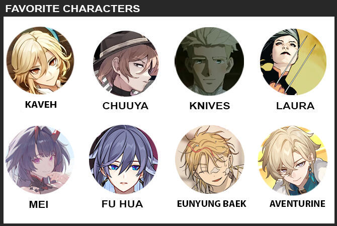 games: hi3, genshin ,hsr, bg3 , dmc, pathologic , ffxiv